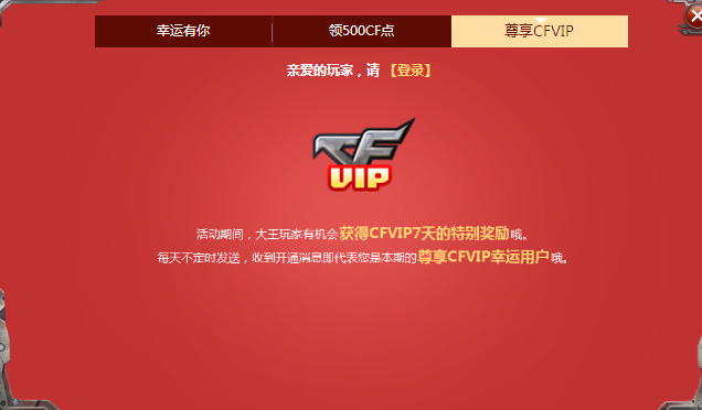 活动期间大王玩家有机会获得CFVIP7天的特别奖励。
